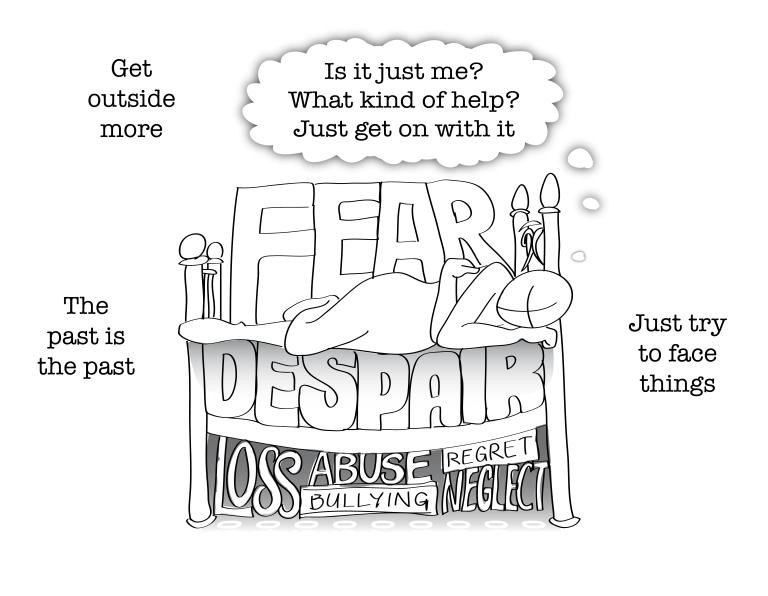 This may be your first time seeking the help, therapy, counselling, or professional psychological input. You may not know what form of that you are seeking, only that you need for things to be different. You may recognise some of your experiences in the image, and how heavy and confusing it can all feel with conflicting advice, ‘online diagnosis’, self blame, and sifting through the various types of therapy that are available.